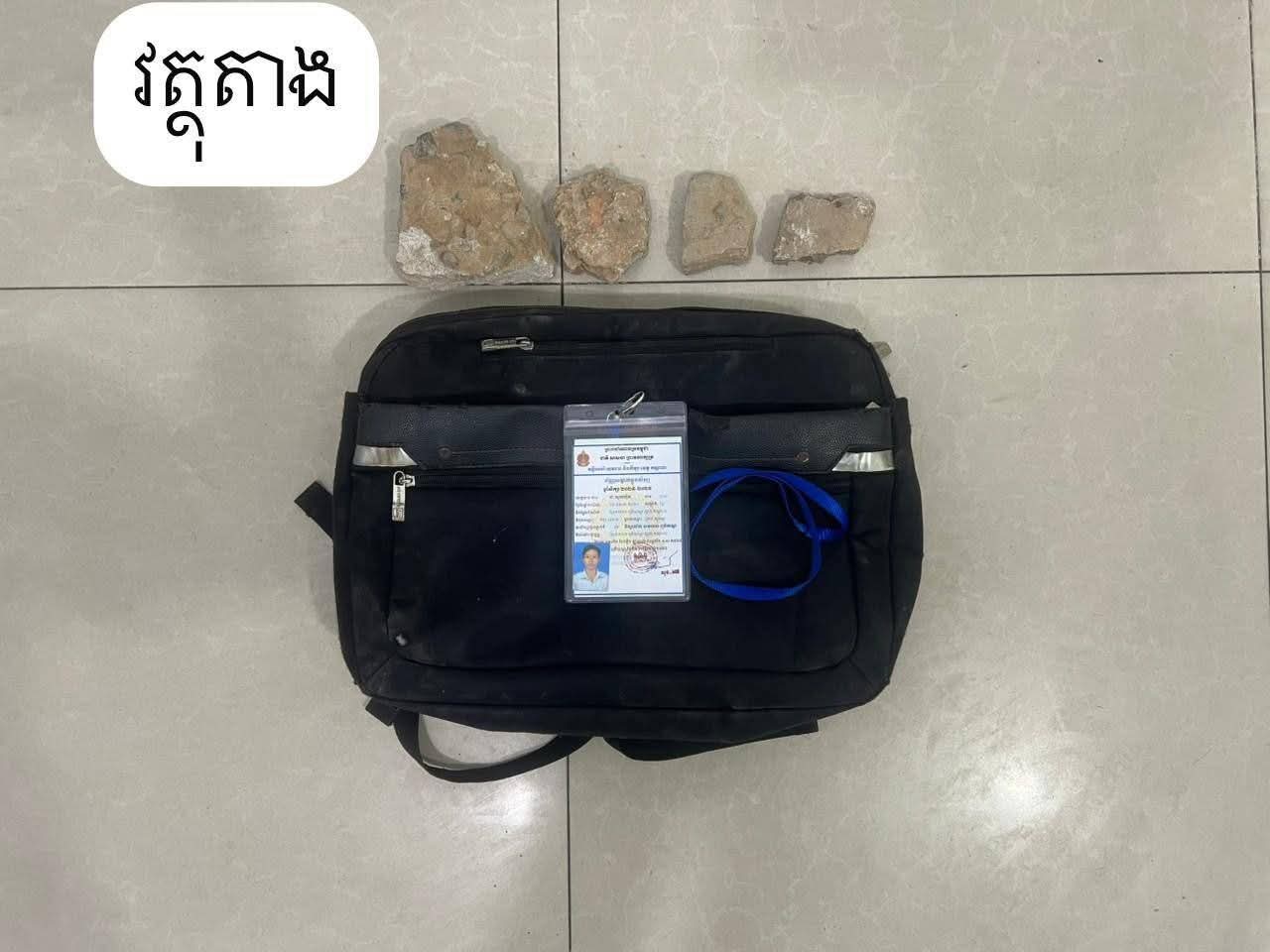 វត្ថុតាងចាប់យក : កាបូបពណ៍ខ្មៅចំនួន០១, ដុំថ្មចំនួន០៤ដុំ, កាតសិស្សចំនួន០១។