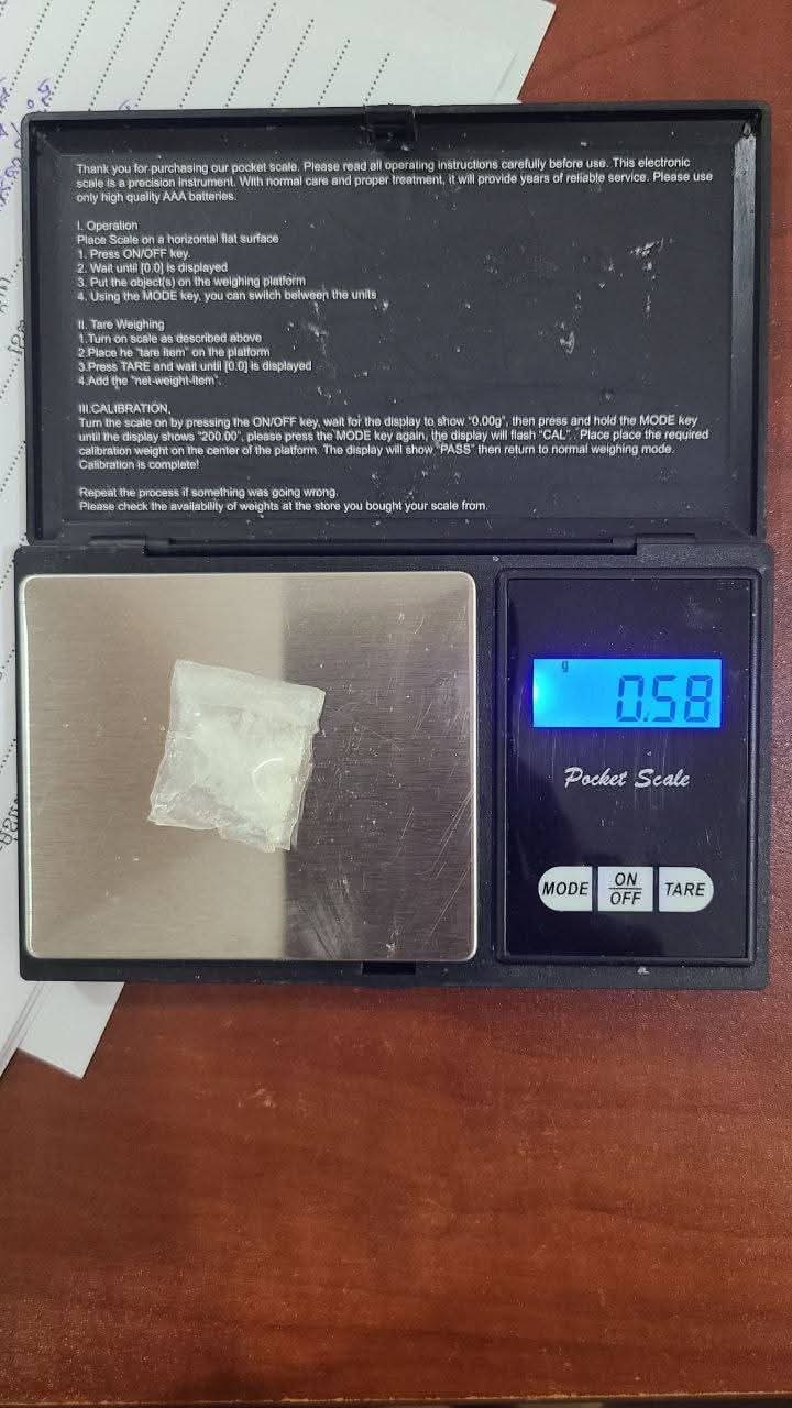 បច្ចុប្បន្ន សមត្ថកិច្ចយើងបានដកហូតសម្ភារៈ នឹងវត្ថុតាងៈ ថ្នាំញៀន ០១កញ្ចប់ ទម្ងន់០,៥៨ក្រាមទាំងសំបកថង, ទូរសព្ទ័ដៃ ០១គ្រឿង និងពិនិត្យទឹកនោមមានសារធាតុញៀននឹងបានកសាងសំណុំរឿងដើម្បីចាត់ការបន្តតាមនីតិវិធី៕